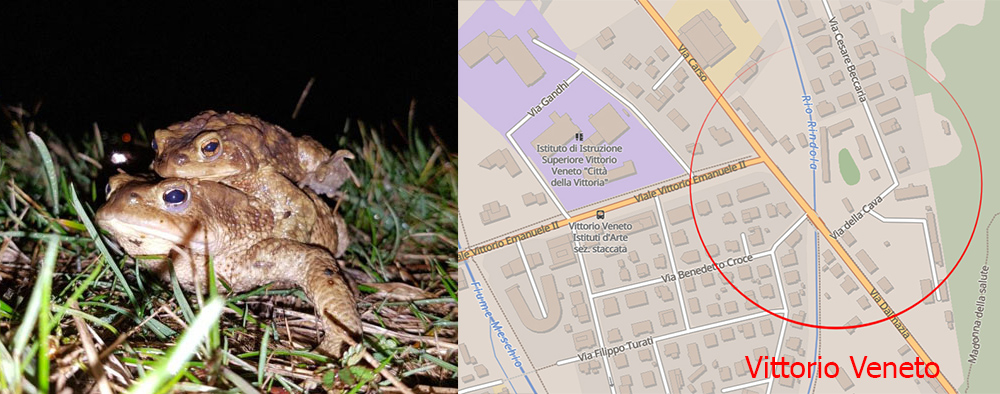 Forse non tutti sanno che ... anche Vittorio Veneto ospita una migrazione di rospi. Anche se molto piccola, rispetto a quella imponente che coinvolge Revine Lago e Soller, ha comunque la sua rilevanza. La presenza di questi animali é un indicatore importante della salubrità di un ambiente.