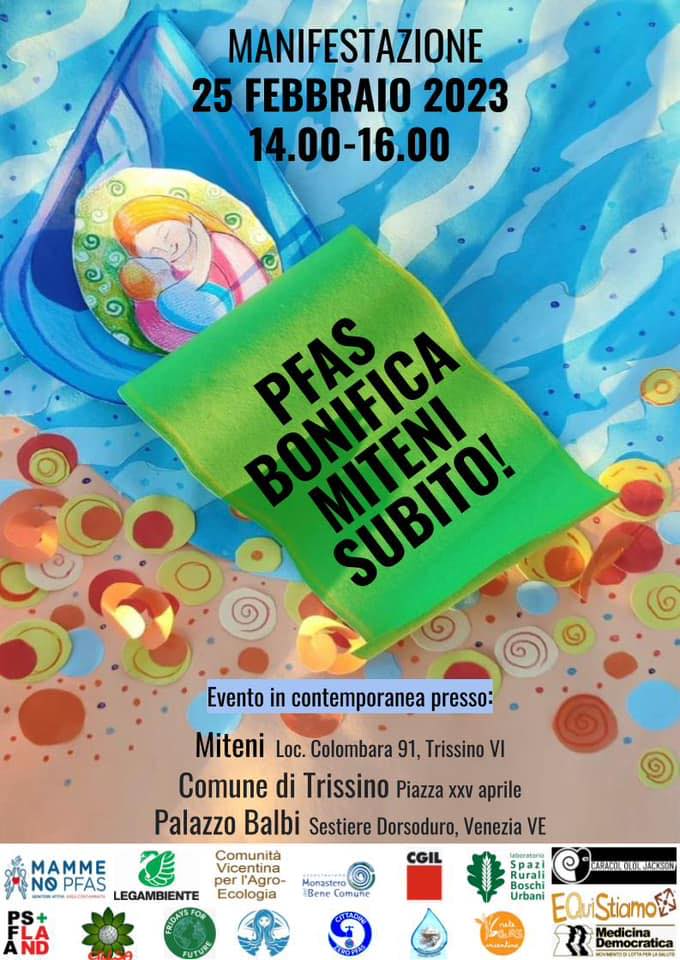 Sabato 25 febbraio alle 14.00 saremo a Trissino, sia davanti all'ex stabilimento Miteni, sia davanti al Comune e a Venezia, davanti al palazzo della Regione.